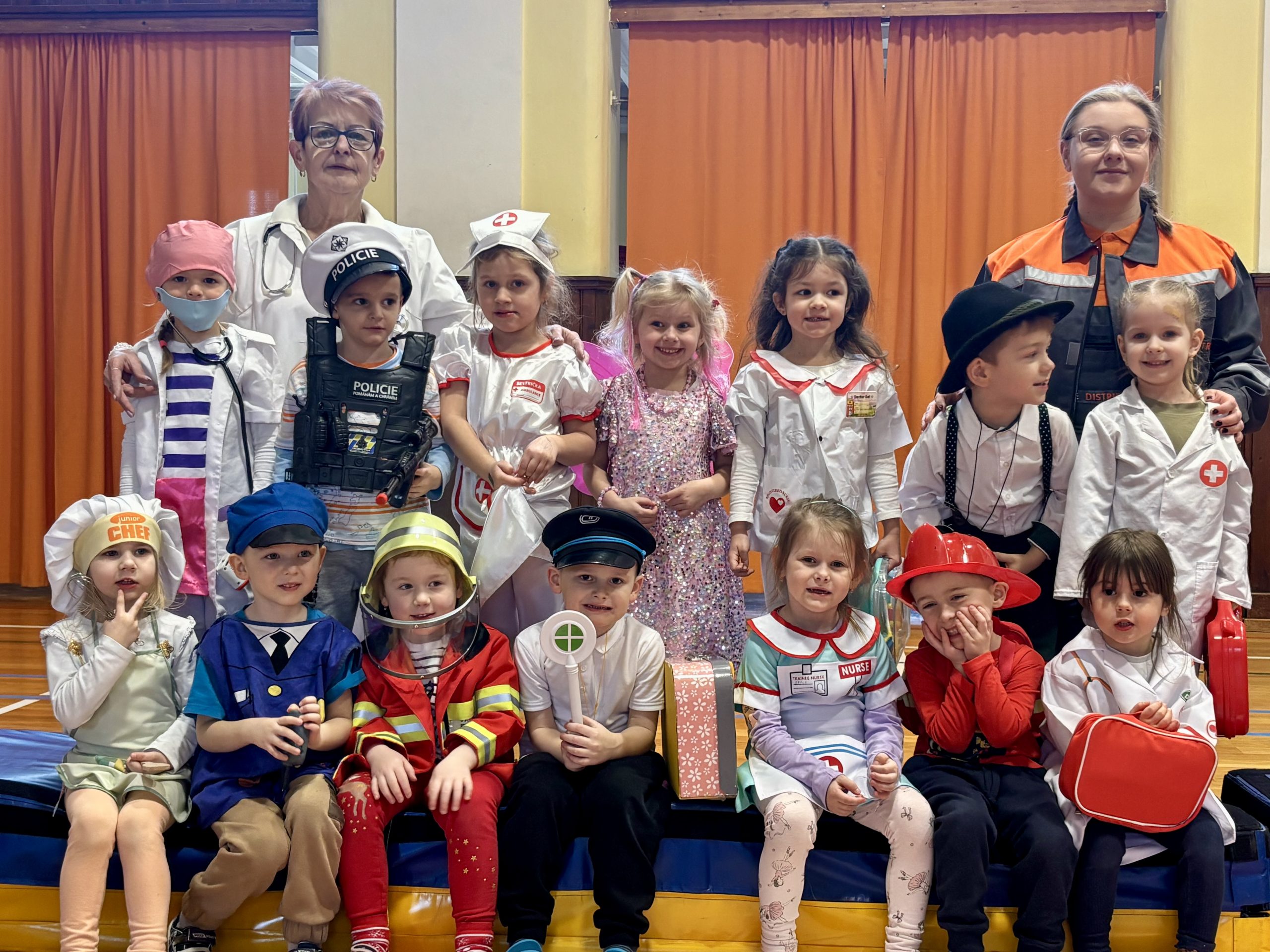 Na letošní karneval do „Sluníčkové“ třídy se dostavil snad celý primariát z „Nemocnice na kraji města“. Proběhla pečlivá vizita, děti prohlášené za „schopné všeho“, tzn. závodit v sokolovně a nebo prožít naplno karnevalové veselí společně s kamarády z „Kytičkové“ třídy.